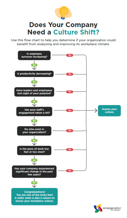 หากคุณตอบว่า “ใช่” สำหรับคำถามเหล่านี้ อาจเป็นเวลาที่ดีในการประเมินวัฒนธรรมปัจจุบันของคุณ หากคุณตอบว่า “ไม่” สำหรับคำถามแต่ละข้อข้างต้น โดยเฉพาะคำถามเกี่ยวกับการเปลี่ยนแปลง อาจคุ้มค่าที่จะตรวจสอบว่าวัฒนธรรมของคุณเสี่ยงเกินไปหรือไม่ เพราะนั่นอาจเป็นอีกเหตุผลหนึ่งที่ต้องตรวจสอบสภาพแวดล้อมขององค์กร