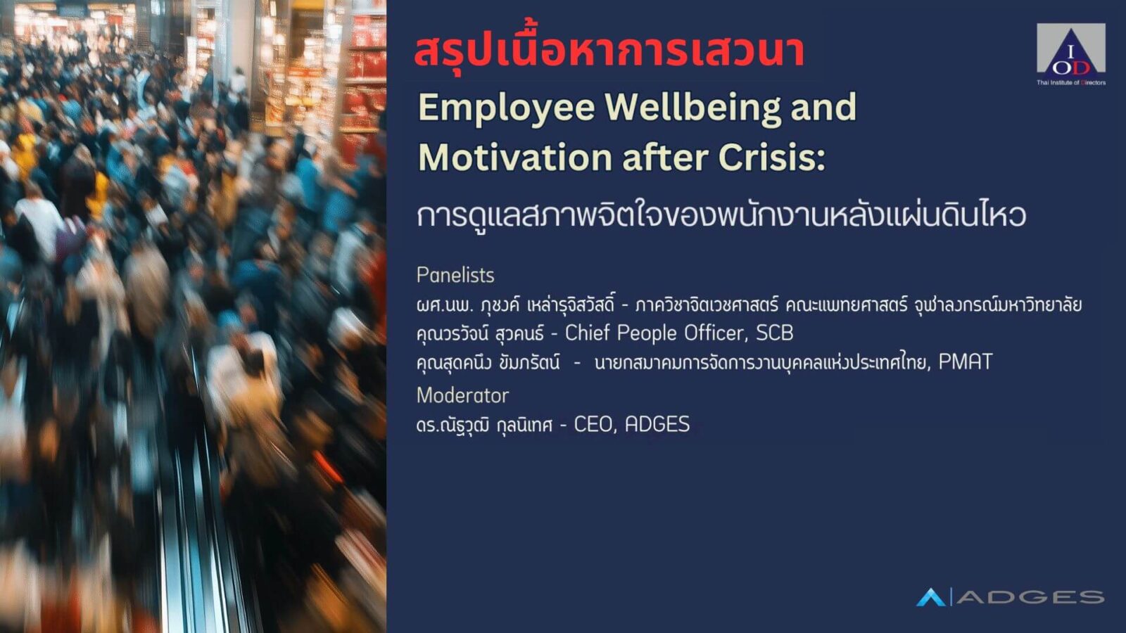 • Online Director’s Briefing 3/2025: Employee Wellbeing and Motivation after Crisis: การดูแลสภาพจิตใจของพนักงานหลังแผ่นดินไหว