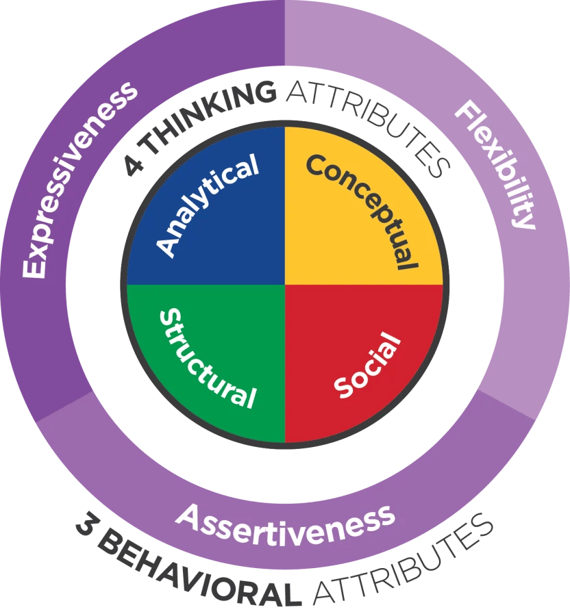 Developed through years of psychometric research, the Emergenetics Pro!le accurately measures three behavioural attributes (Expressiveness, Assertiveness, Flexibility) and four thinking attributes (Analytical, Structural, Social, Conceptual). The attributes are represented in a clear, colour-coded report, making it memorable and applicable immediately.
