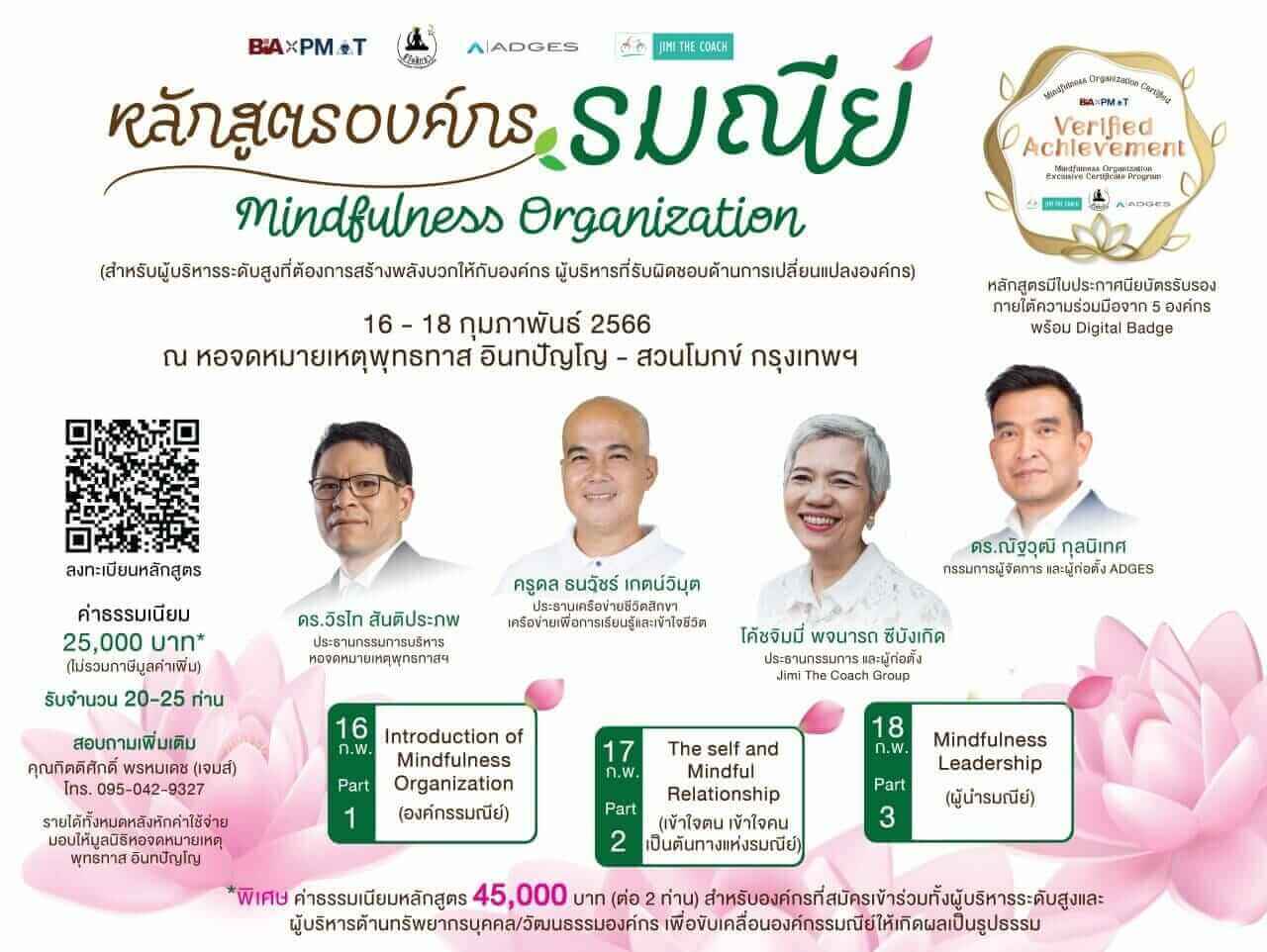 หลักสูตรองค์กรรมณีย์: Mindfulness Organization วันที่ 16-18 กุมภาพันธ์ 2566