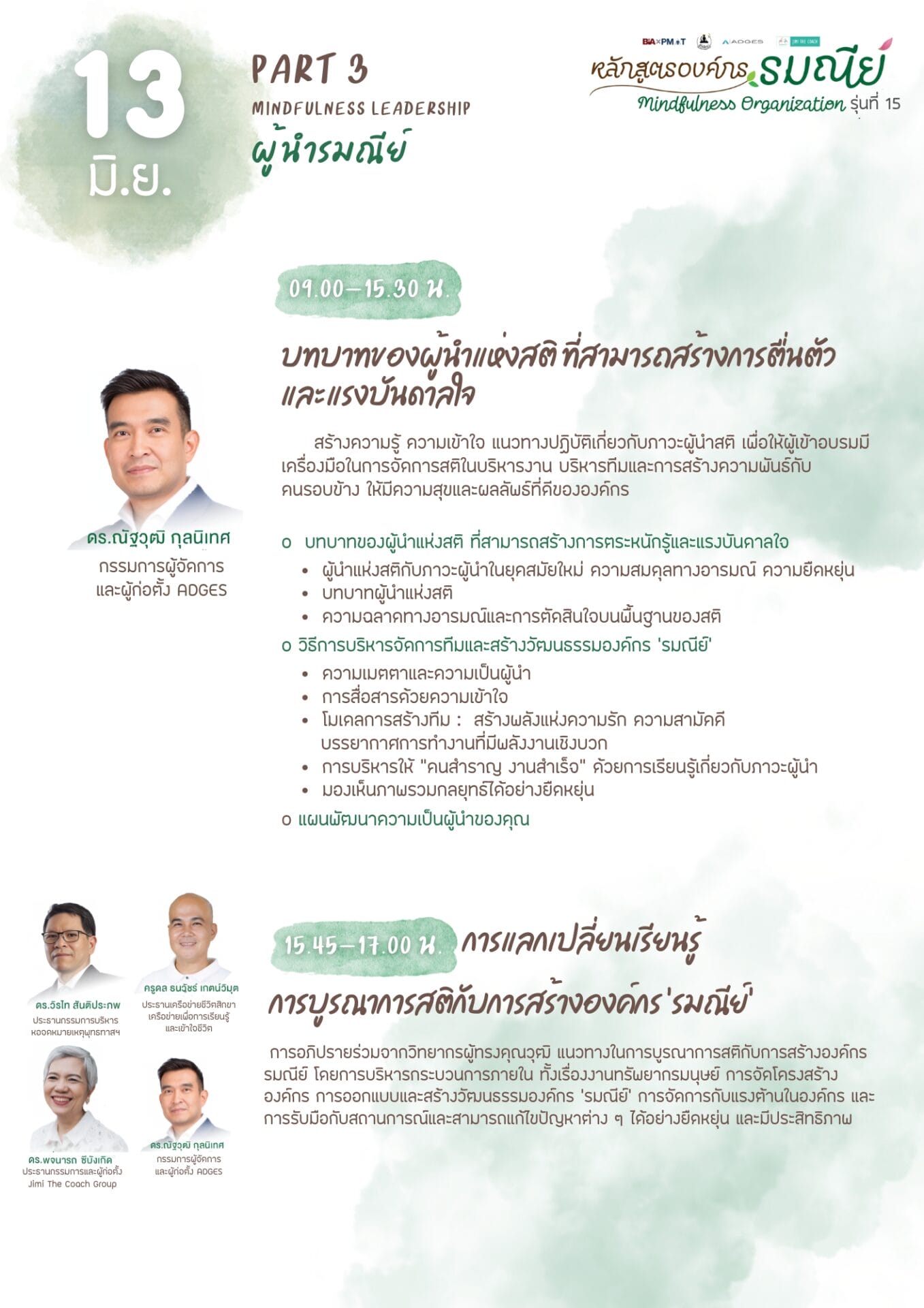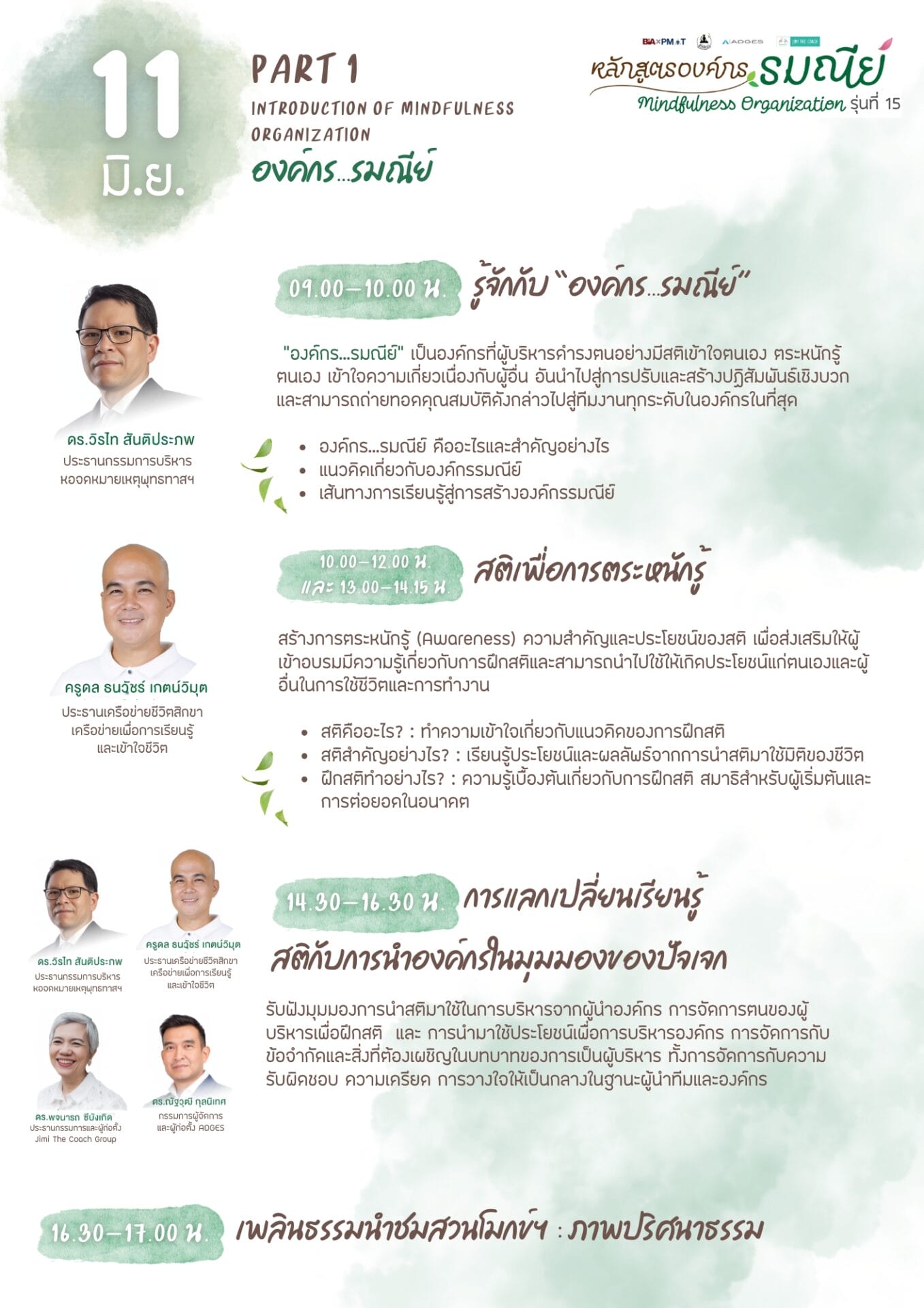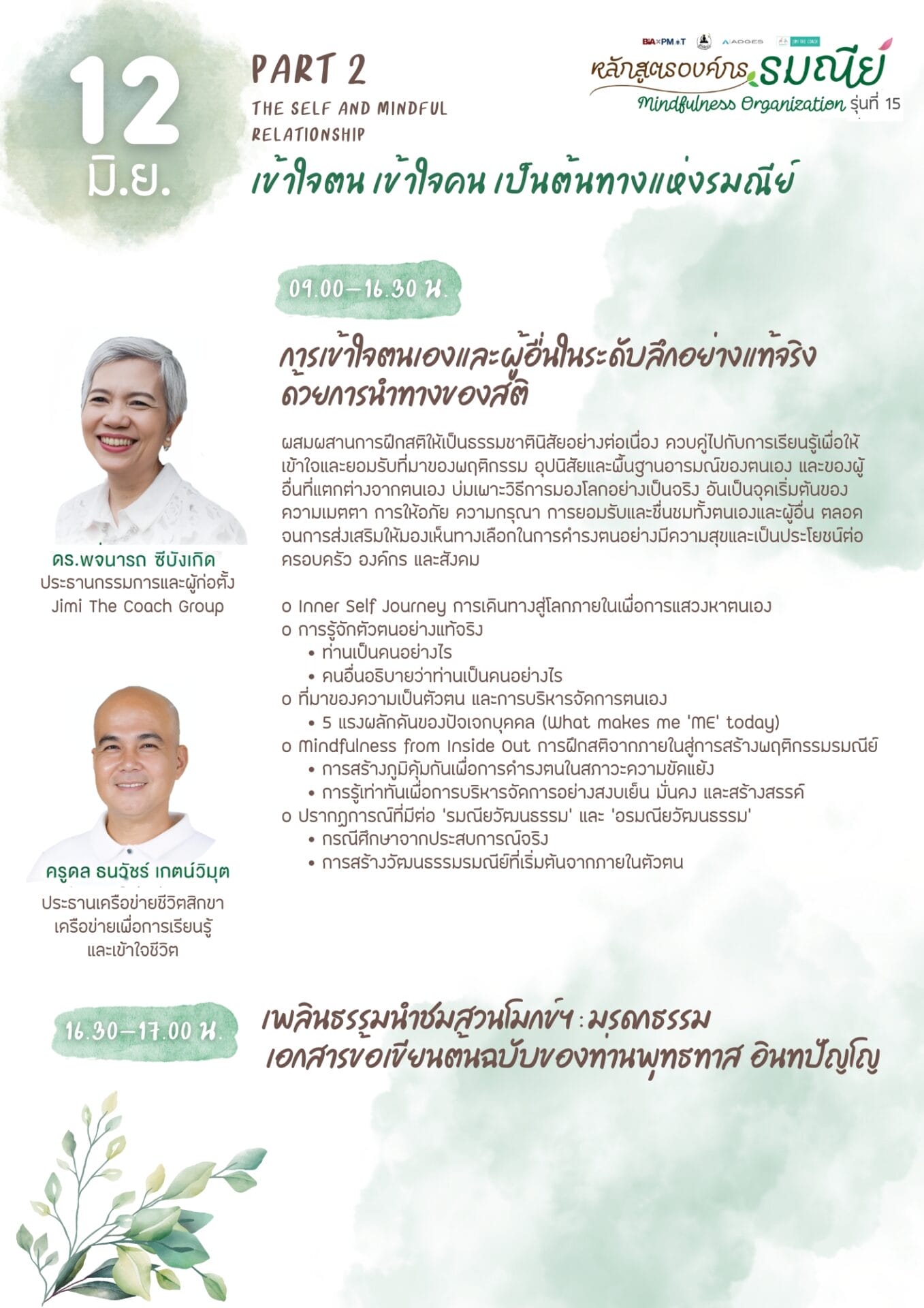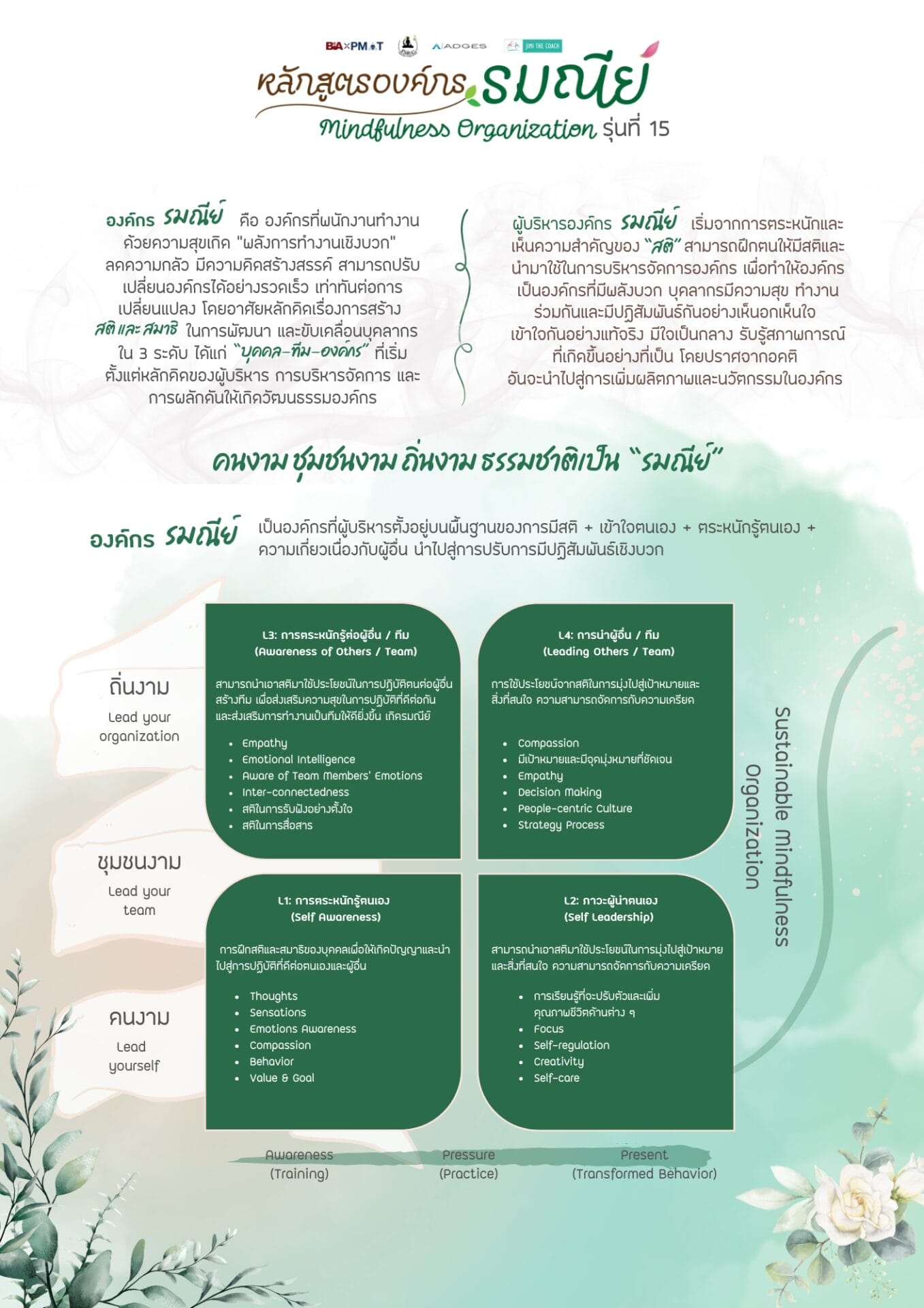 สวนโมกข์กรุงเทพฯ และ PMAT ขอเชิญผู้บริหารระดับสูงเข้าร่วมหลักสูตร “องค์กรรมณีย์” (Mindfulness Organization) รุ่นที่ 15