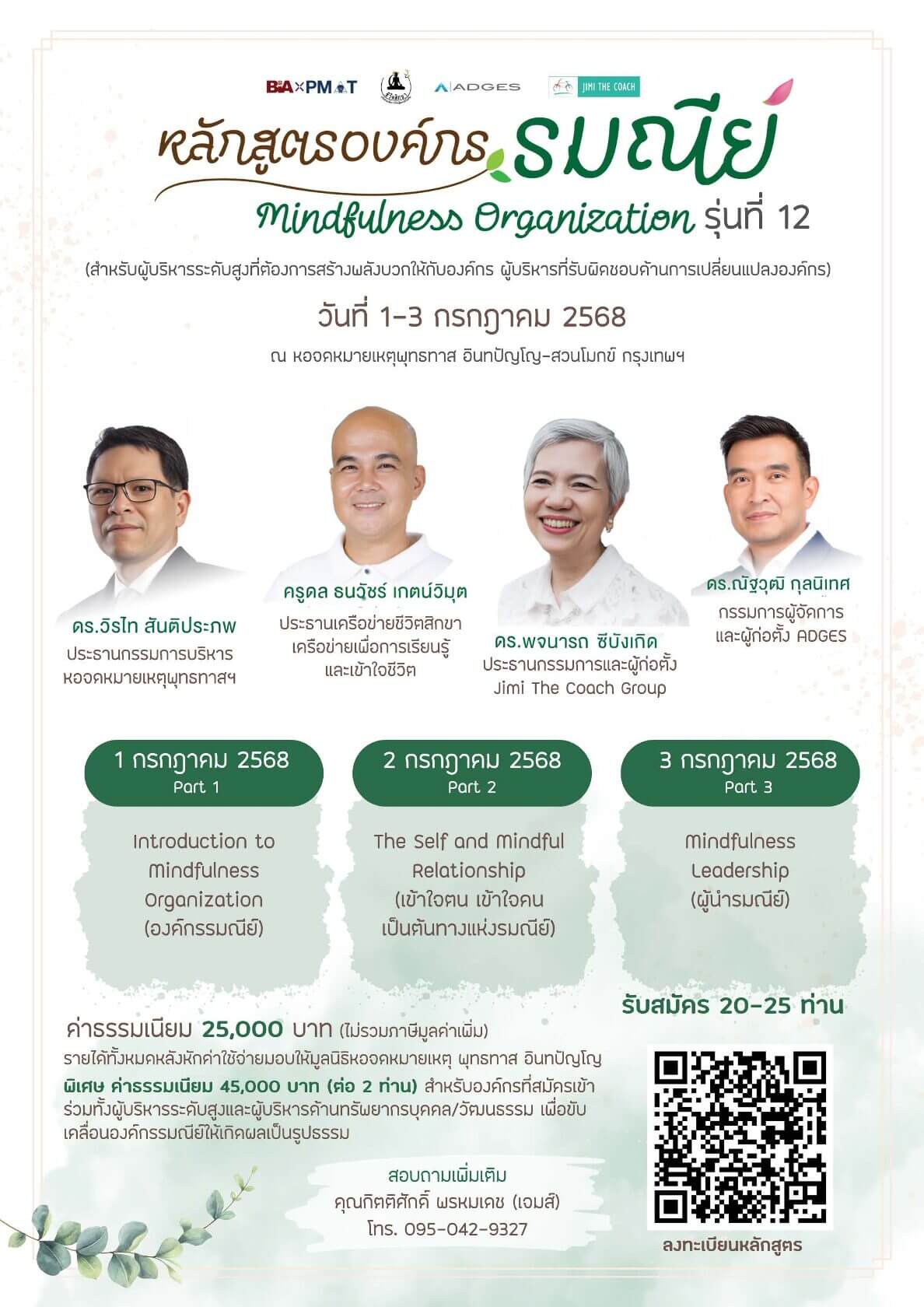 หลักสูตร “องค์กรรมณีย์” (Mindfulness Organization) รุ่นที่ 12 “ผู้นำที่รู้เท่าทันใจตน สร้างองค์กรที่อบอุ่นและมีพลังได้อย่างยั่งยืน”