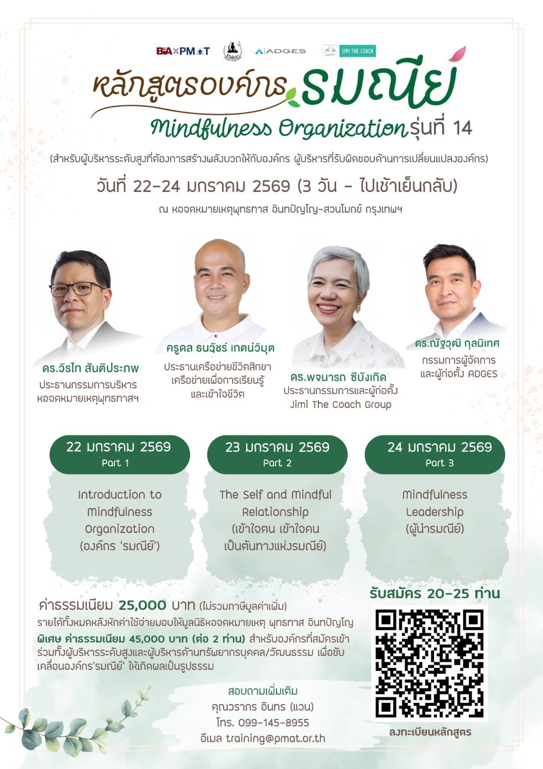 สวนโมกข์กรุงเทพฯ และ PMAT ขอเชิญผู้บริหารระดับสูงเข้าร่วมหลักสูตร “องค์กรรมณีย์” (Mindfulness Organization) รุ่นที่ 15