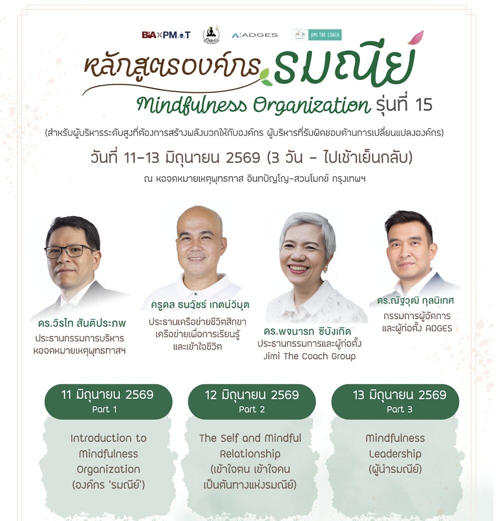 หลักสูตรพัฒนาผู้นำด้วยสติ: ขอเชิญผู้บริหารระดับสูงเข้าร่วมหลักสูตร “องค์กรรมณีย์” (Mindfulness Organization) รุ่นที่ 14