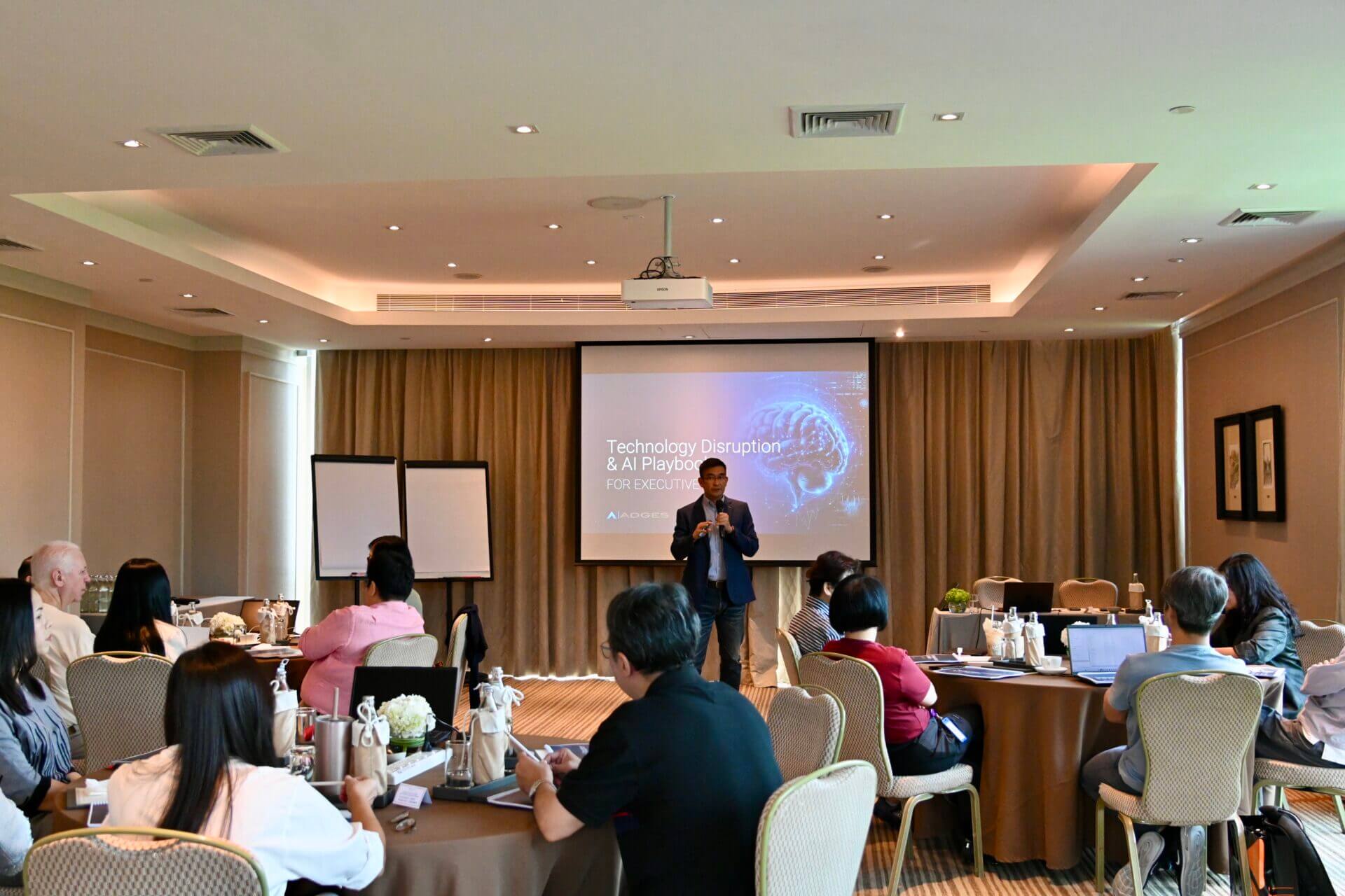 เมื่อวันที่ 9 พฤษภาคม 2568 บริษัท ADGES นำโดย ดร.ณัฐวุฒิ กุลนิเทศ ได้จัดการอบรมหัวข้อ “AI and Technology Disruption – Practical Guide for Leaders” สำหรับผู้บริหารของบริษัทจดทะเบียนในตลาดหลักทรัพย์ โดยมีจุดมุ่งหมายเพื่อยกระดับความเข้าใจในเรื่องการเปลี่ยนแปลงทางเทคโนโลยีและการประยุกต์ใช้ AI ในภาคธุรกิจอย่างเป็นรูปธรรม
