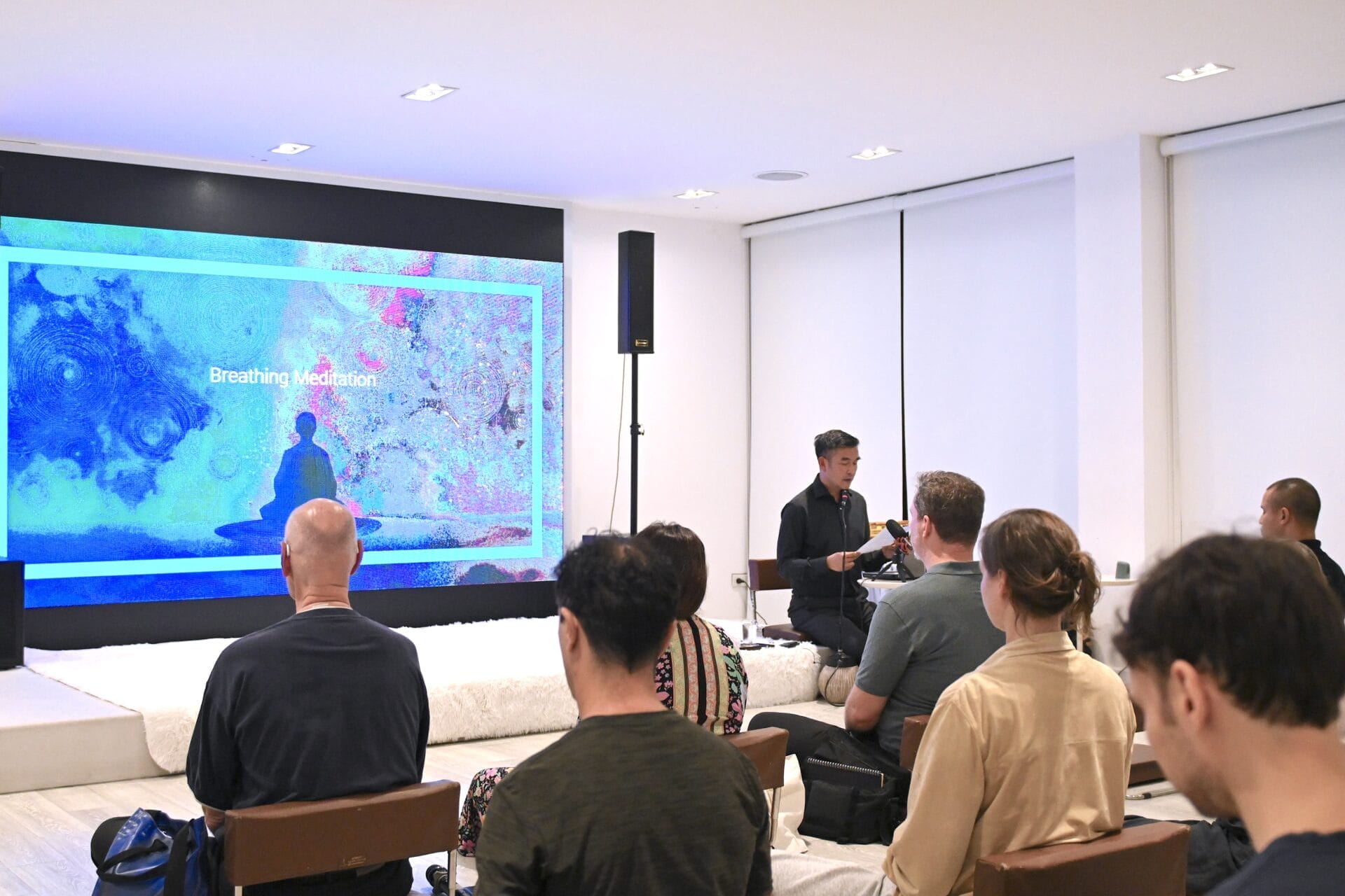นอกจากการบรรยายยังมีช่วงนั่งสมาธิสั้น ๆ และการสนทนาแลกเปลี่ยน (Q&A) ที่เปิดโอกาสให้ผู้เข้าร่วมได้ร่วมถามตอบอย่างใกล้ชิด