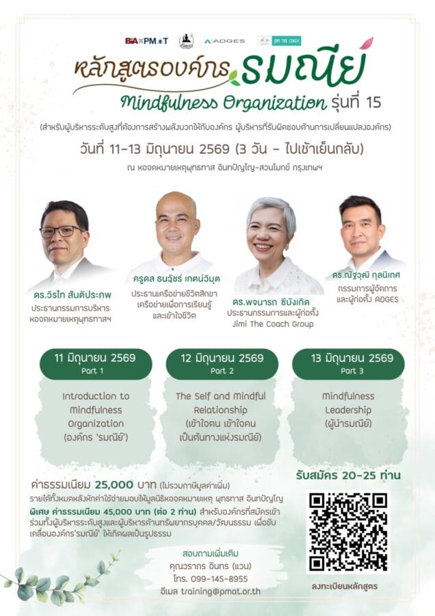 “องค์กรรมณีย์ : Mindfulness Organization (Exclusive Certificate Program)”